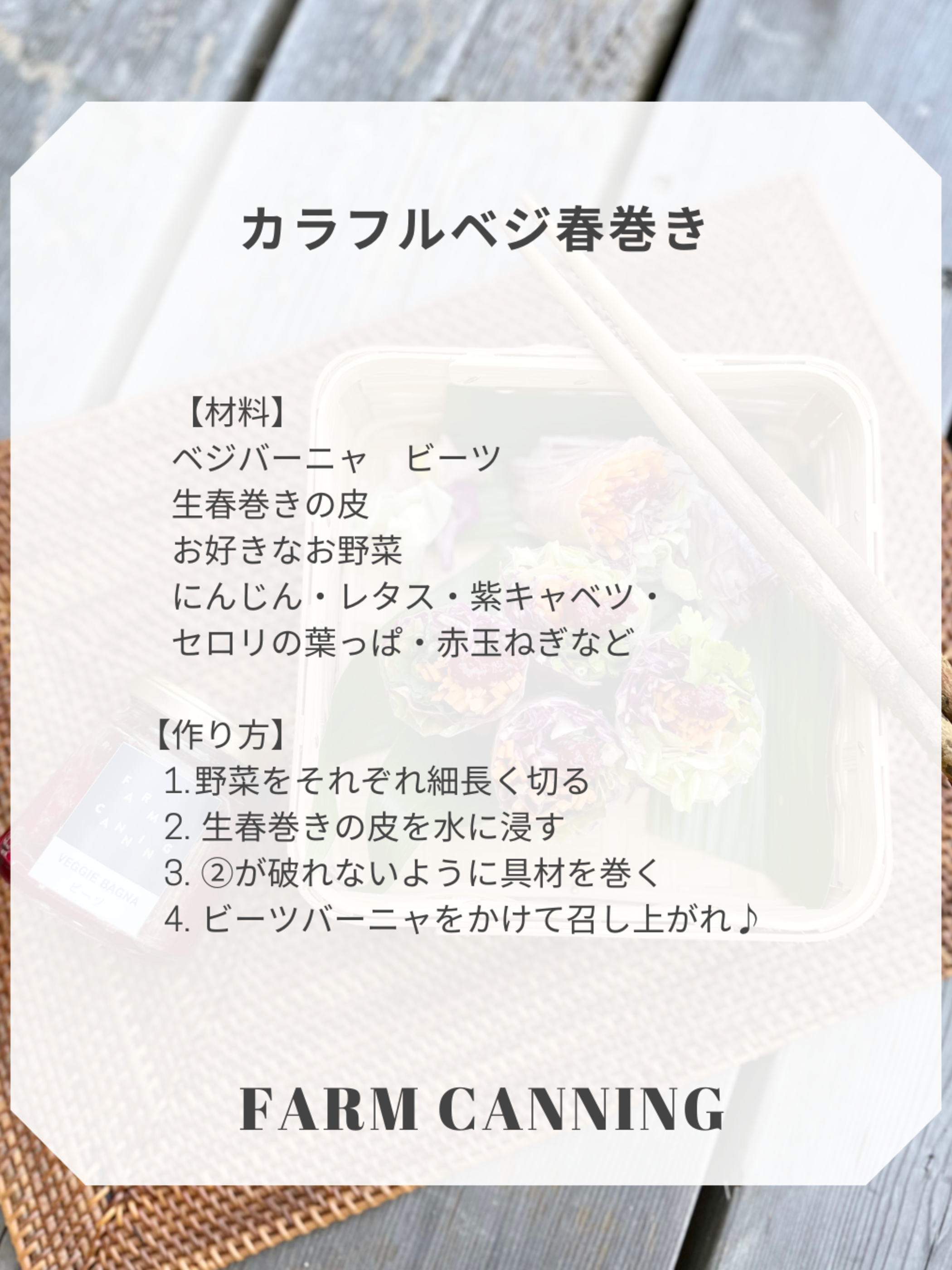 アンチョビの代わりに塩麹を使って作ったバーニャカウダソース。季節ごとに旬のお野菜で作るFARM CANNING定番の商品です。