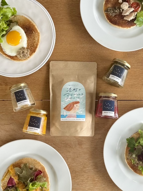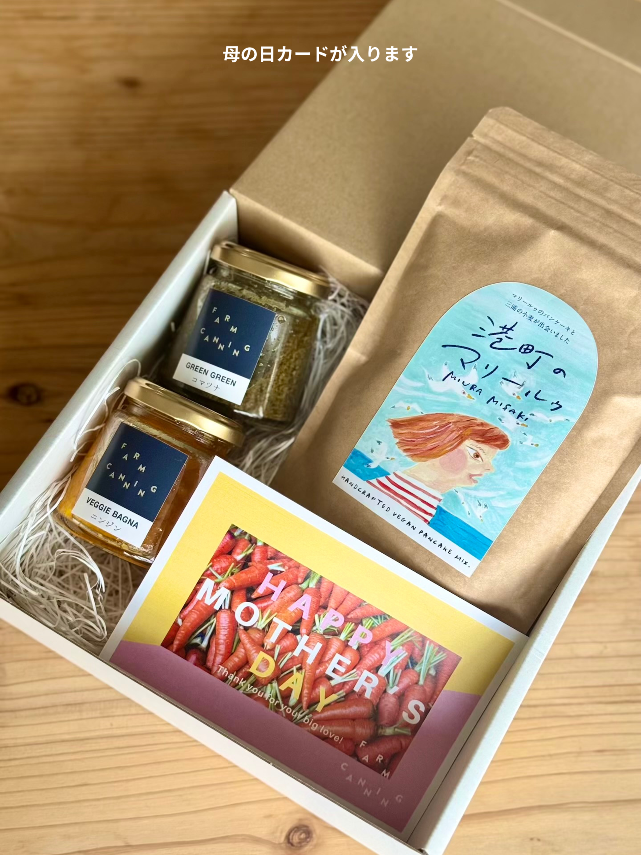 ファームキャニングで人気のびん詰めと、マリールゥのパンケーキミックス(港町のマリールゥ)をセットにしました!