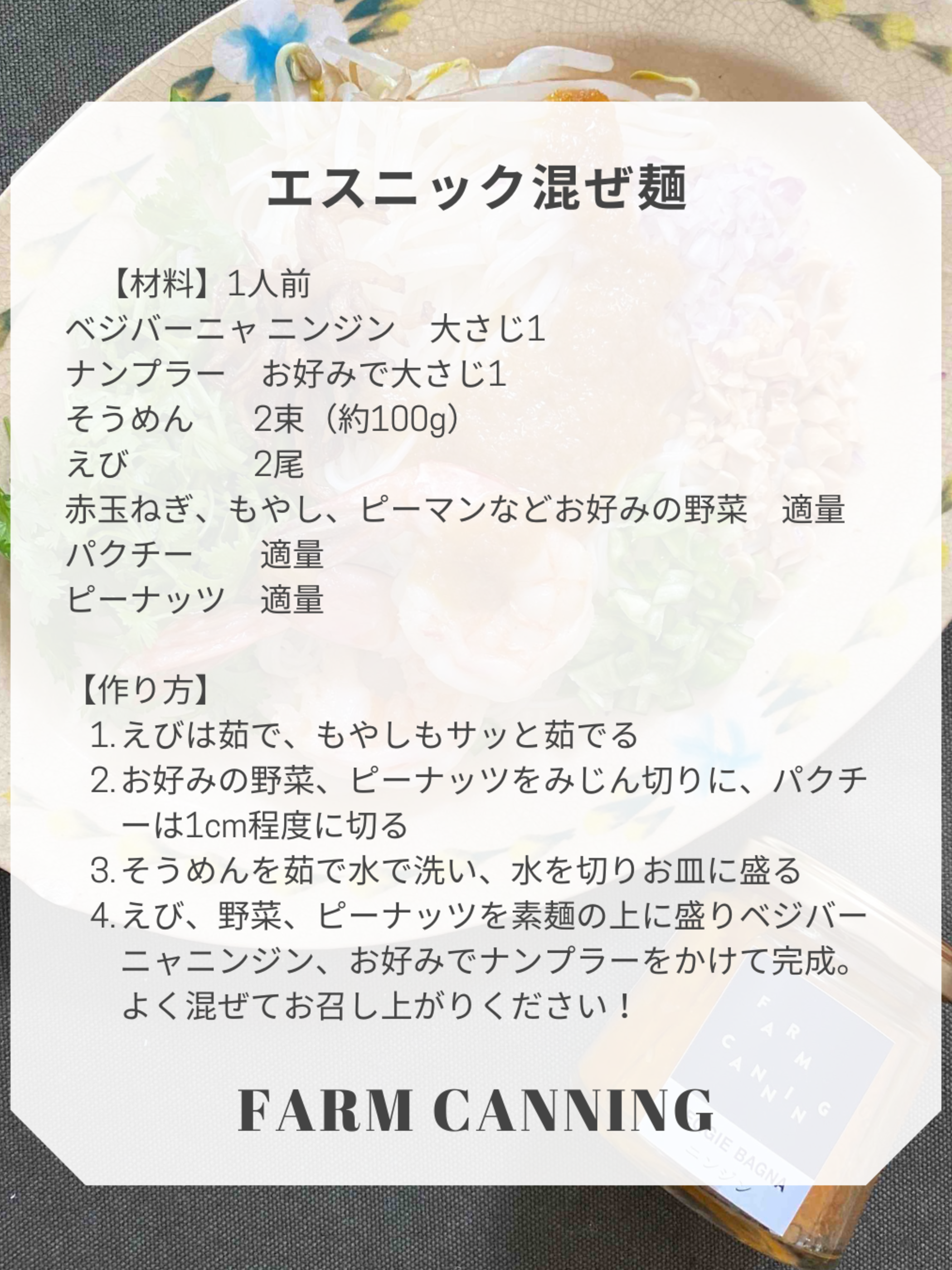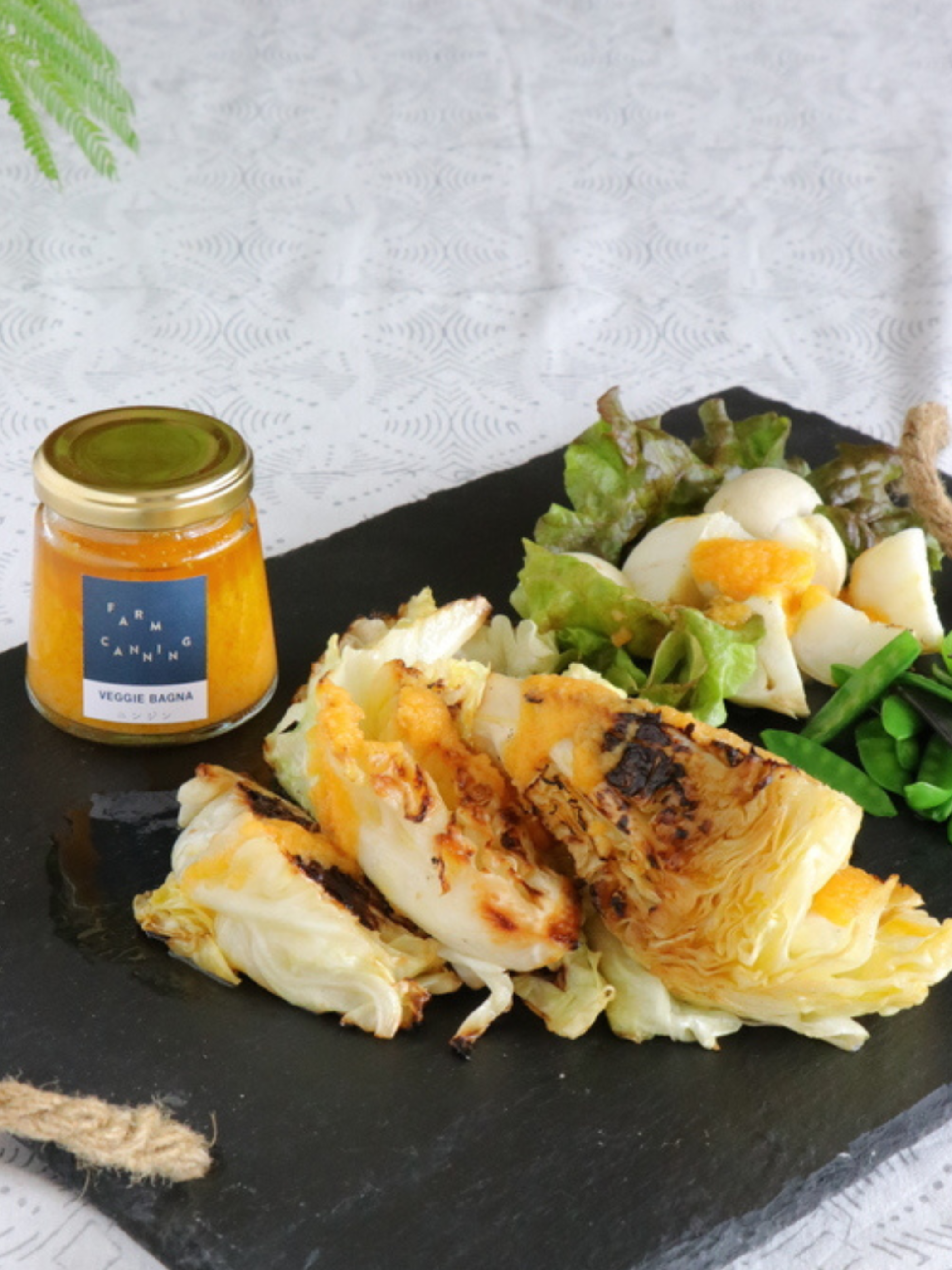 アンチョビの代わりに塩麹を使って作ったバーニャカウダソース。季節ごとに旬のお野菜で作るFARM CANNING定番の商品です。