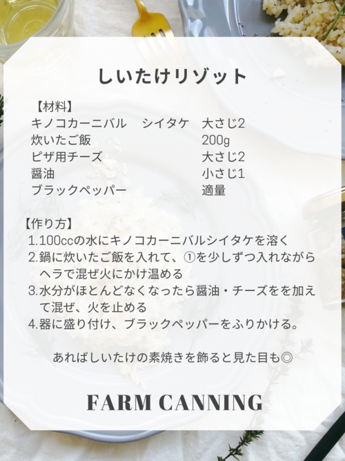 しいたけ(神奈川)、玉葱、米油、にんにく、塩、レモン汁